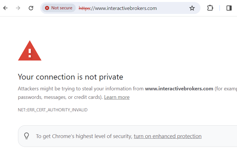The interactive brokers website is secure. I checked. Turn on your VPN and you are safe for all data leaving your computer.
