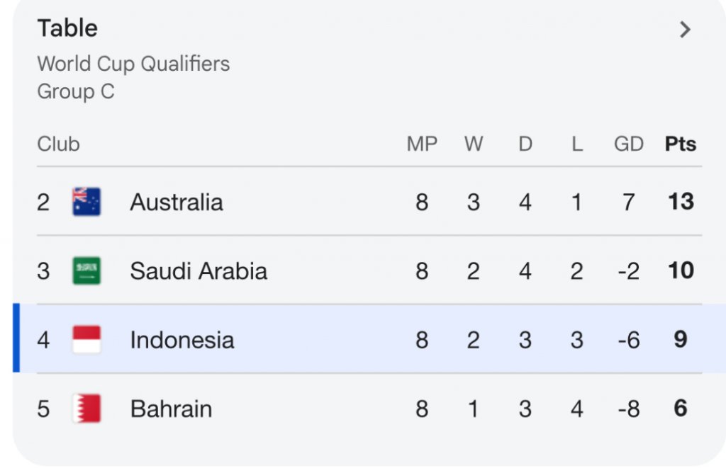 So now the Indonesian national team has to continue with playing in qualifying groups. Only the number ones in those groups will qualify for the World Cup tournament.