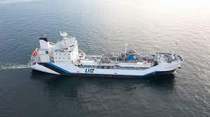 So the Japanese Kawasaki developed the world's first liquid hydrogen carrier ship. It is called the Suiso Frontier. It has a huge double shielded & insulated tank to keep hydrogen at a temperature of -253° Celsius (-423° Fahrenheit). That is the temperature at which hydrogen becomes liquid.