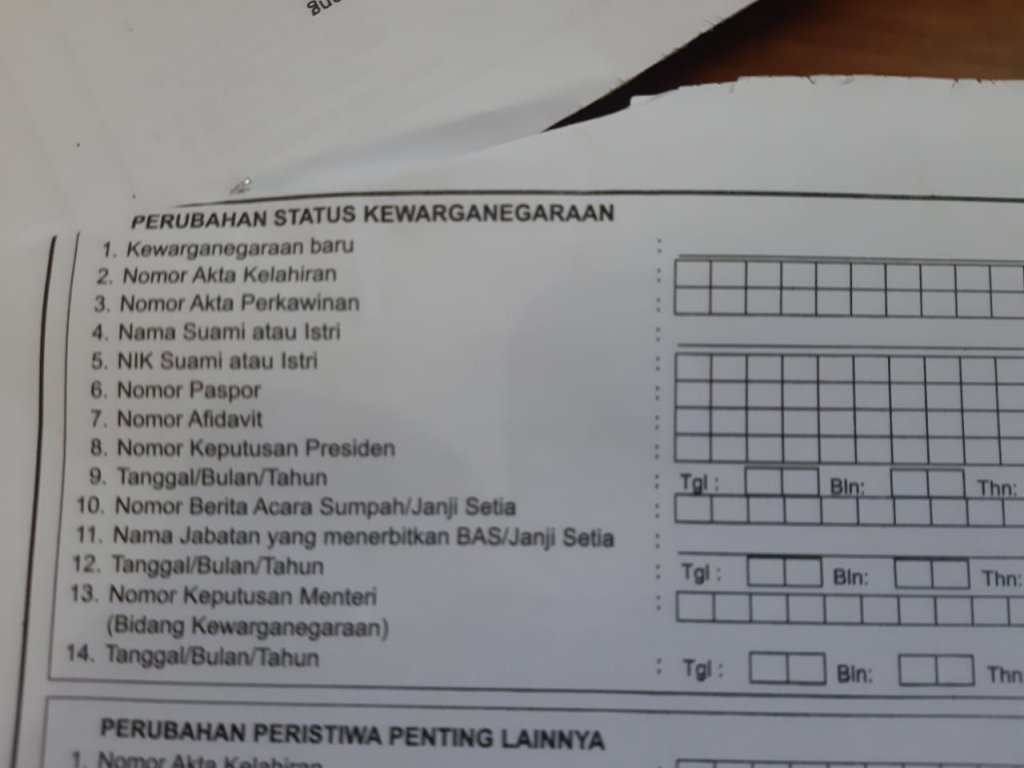 they handed us a 4 double-sided page form & insist we go back to jakarta to get the minister of law to complete parts of it.