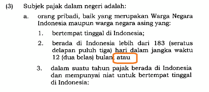 This provision applies if the foreigners stays in Indonesia for more than 183 days, or approximately six months.