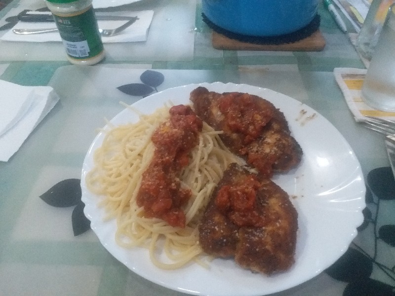 I just leave dish washing for hubby- he doesn't mind it, I hate it.Chicken Parmigiana.